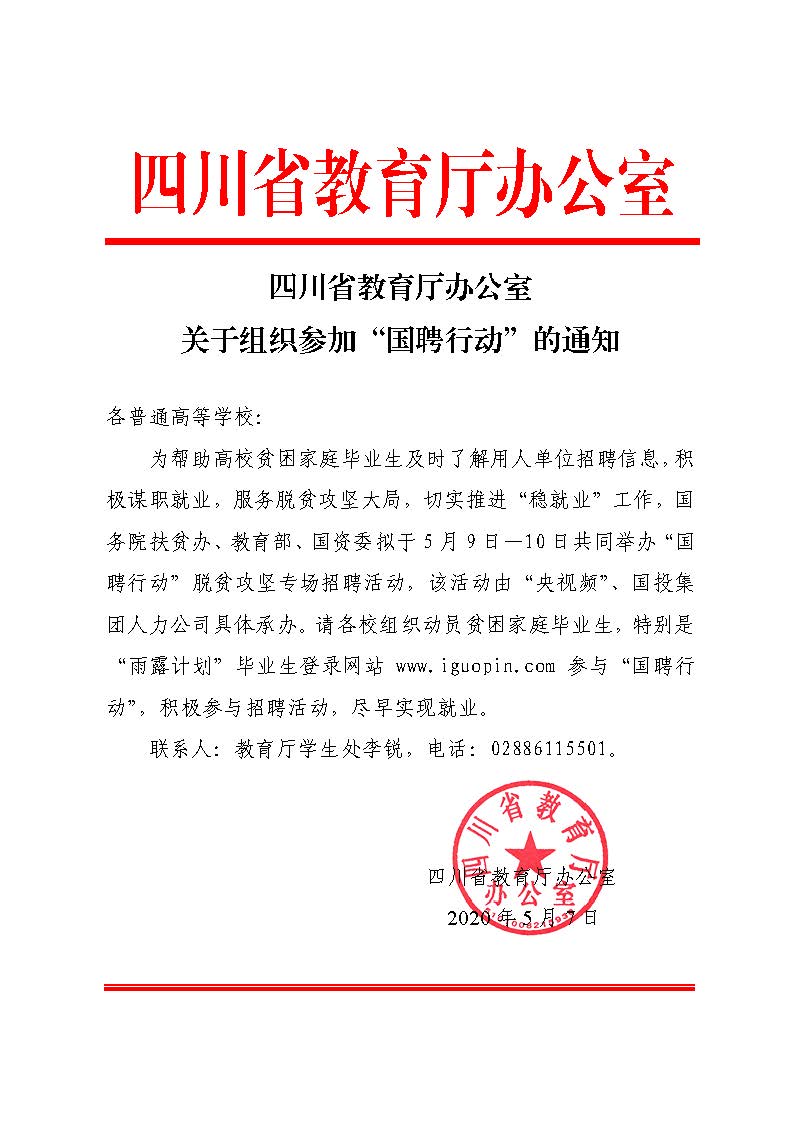 四川省教育厅办公室关于组织参加“国聘行动”的通知