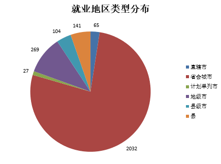 我校2019届毕业生有65人在直辖市就业,占比2.46%;在省会城市就业2030人,占比77.03%;计划单列市27人,占比1.02%地级市就业269人,占比10.20%;县级市就业104人,占比3.94%;县就业141人,占比5.34%;