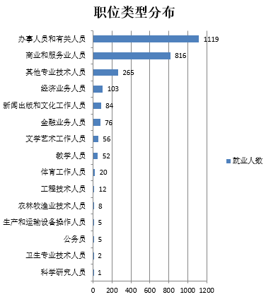 我校2019届毕业生有1119人为办事人员,占比42.64%;有816人为服务人员,占比31.10%;其他技术人员265人,占比10.10%。其他零星分布于业务员、出版工作人员、等职位。